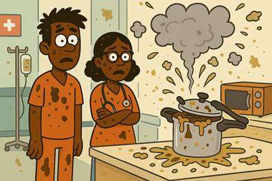 When hospital heat stress and workplace pressure collide, even the lunchroom cannot survive under this pressure. (Image created with the help of ChatGPT Open AI).